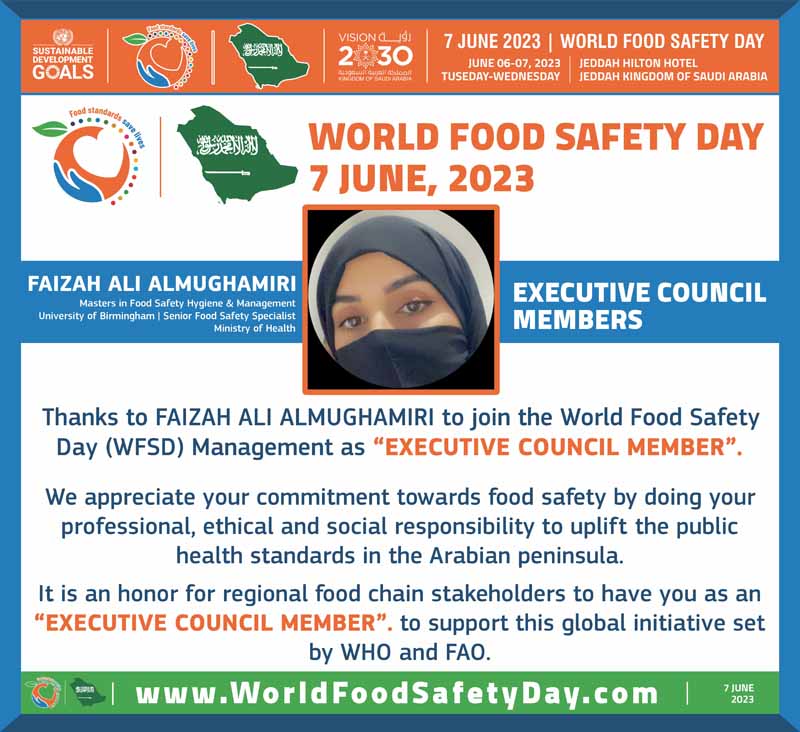 Masters in Food Safety Hygiene & Management – University of Birmingham l Senior Food Safety Specialist- Ministry of Health