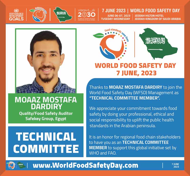 Mr moaaz is a food safety professional, he perused four years of practical training and theoretical studies in both fields of microbiology and biochemistry and four years of working on the quality and food safety field in local and multinational companies, during his bachelor’s degree. He is trained in quality and food safety courses such as food safety management level 4, BRC global standard for food safety V8 and, ISO 9001:2015 Lead auditor, FSPCA preventive controls for human food and HACCP level 3.